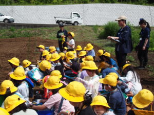 また,終わった後には大豆の種まきの仕方についての話を熱心に聞いて,ワークシートにメモをしていました。