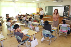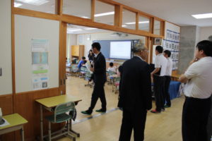 また、本校が4校統合を経て誕生した学校であることから、学校施設・設備、スクールバスの様子、学童保育の様子等について、視察団の皆さんが質問する様子も見られました。