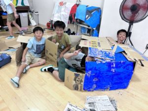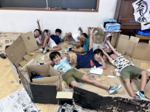 制作途中も、子どもたちの笑い声が絶えません。子どもたちの屈託ない笑顔がたくさん見られ夢のような時間でした。