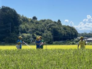 「スズメよ,5年生のお米は食べないでね。」と願いながら。