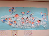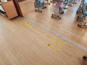 保健の先生の “姿勢” に関するお話をきっかけに、教室前に枠を設置してみることになったそうです(^^)