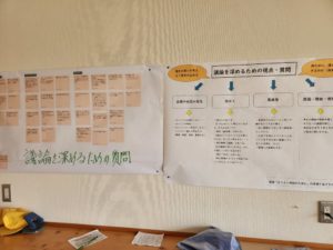 学びの積み重ねを意識できるように、前時までの資料を掲示する様子―。