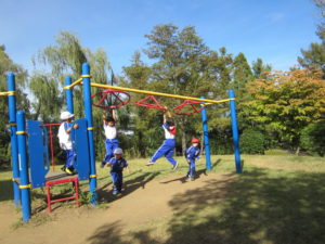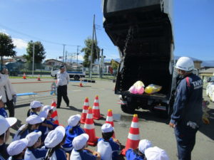 10月22日(火)に秋の校外学習に行きました。太陽建機さんでは、高所作業車やごみ収集車、アームの作業車とダンプカーを実演を交えて説明してもらいました。子どもたちの質問にも丁寧に答えていただき、大変勉強になりました。御勅使南公園では、どんぐり拾いをしたり、お弁当を食べたり、遊具で遊んだりと、晴天の中、思い切り楽しみました。