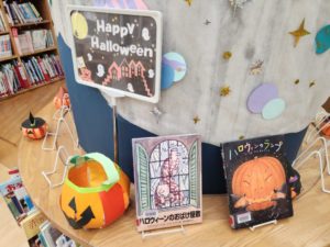 ハロウィンの時期に重なっているということもあり、図書館にもハロウィン色が!
