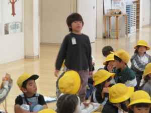 帰ってきた後の、終わりの会の様子です。感想を聞くと、たくさんの手が挙がりました。学んだことがたくさんあったので、話したくて仕方がないといった感じでした。出発してから帰ってくるまで、ほんの数時間のできごとでしたが、表情がぐっと大人になったように感じます。充実した時間を過ごすことができました。