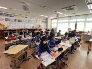 授業後には,1人1本天然水と素敵な付箋のプレゼントをいただきました♪ 子どもたちは大喜びです♬