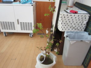 鉢植えの綿を見せてもらい,その綿で糸を紡いでいくことを知りました。子どもたちは綿が植物からとれることに驚いていました。