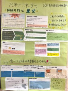 さて,5年生の総合「お米とこれから」の取組が掲示されることとなりました。