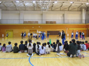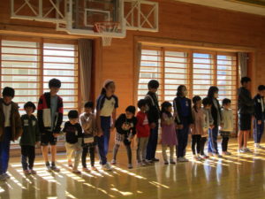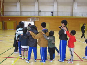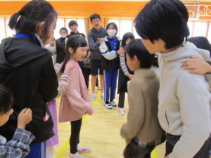 6年生が「1年生と一緒にあそぼう!」と話し合い、計画を立てて、1年生と遊んでくれました。最初は、「だるまさんの1日」です。6年生と手をつなぎ、お茶を飲んだり、ゲームをしたり、寝ころんだりといろいろなポーズをとりながら鬼を目指します。次は「ジャンケン列車」6年生の大きな背中と背伸びをしながら肩をつかむ1年生がとっても愛らしいです。「ドッチボール」は、1年生は体育でやり始めたばかり。ルールを教えてもらいながら、投げたり逃げたりしてゲームを楽しみました。最後は、6年生の本気の「ドッチボール」を見せてもらい、その迫力に「すごい!」「かっこいい!」の声があちこちから聞こえました。6年生にとっても1年生にとってもとても素敵な時間を過ごすことができました。