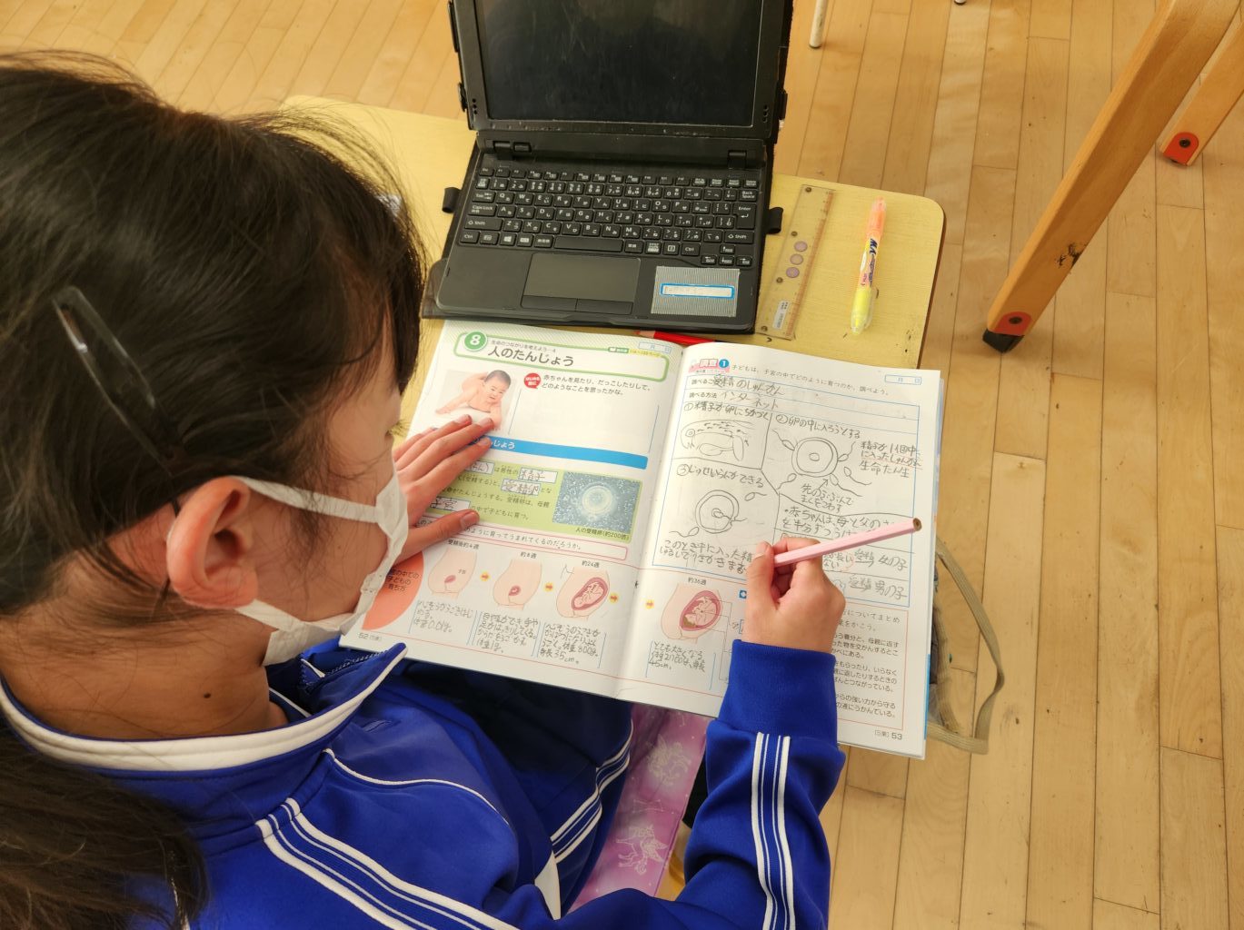 この日は、人がうまれるまでの成長の過程について、一人一人テーマを決めて調べ学習をしました。