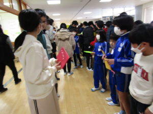 6年生に「6年生に贈る会」の招待状を渡しに行きました。「6年生に喜んでもらえるように!」を合言葉に、メッセージを考えたり、飾りつけをした招待状です。ドキドキしながら、今日を迎えました。渡すときには、自分が招待状を作った6年生がどこにいるか探し、見つかると嬉しそうに駆け寄っていきました。「楽しみにしていてください」「中学校でも頑張ってください」など様々な言葉をかけながら、招待状を渡すことができました。今、「6年生に贈る会」で発表する出し物の練習も頑張っているところです。6年生にいっぱいの気持ちが贈れるといいなと思います。