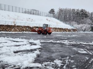 長坂中南駐車場は、長坂総合支所の計らいで、道路の雪かきを終えた業者さん(峡北建設 様)が除雪に来てくださり、なんとか卒業式に間に合うように除雪を終えることができました!