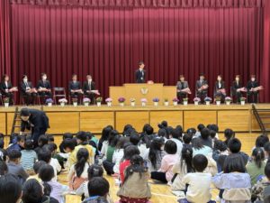 今日は離任式でした。これまでお世話になった先生方とのお別れに、涙する子ども達も。そして、先生方の目にも涙。