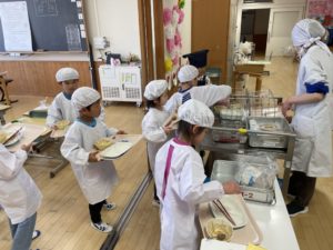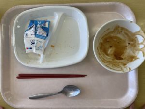本日から1年生の給食が始まりました。先生方にやり方を教えてもらいながら、みんなで協力して準備している姿、「めちゃうま!!」「美味しい~!」といった多くの声など、給食の時間を通して様々なことを学んだり、感じたりしているようです。これからの給食も楽しみですね。