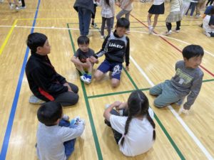 全体の様子を見ていると、よく目に留まったのは1年生の笑顔と、6年生の動きです。児童会本部役員だけではなく、6年生1人1人が、不安そうな1年生に優しく声をかけたり、どう伝えていいかわからない時に「○○って言ってみるといいよ」とアドバイスしたりすることができていました。今後の異学年での交流も楽しみです。