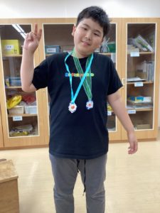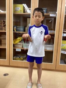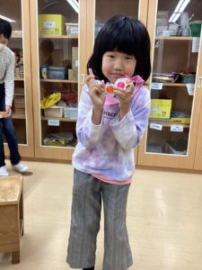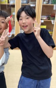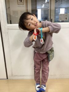 今週のふれあいタイムではプラスチックコップを使ったワッペンづくりをしました。コップに模様を描いたり、完成した姿を想像しながらハサミで切れ込みを入れたりする姿がありました。トースターの中に入れるとコップが溶けて不思議な形に!? 冷ましてリボンを通して自分だけの作品の出来上がり。完成した作品を持って笑顔になる姿がありました。