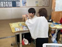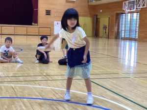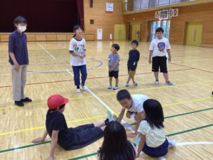モルックでは班ごとのチームになり、対戦をしました。投げる順番を考えたり、友だちの横で応援したり、勝敗について「いい試合」と感想をもったりしていました。活動を通して、なかよしの輪が広がりました。