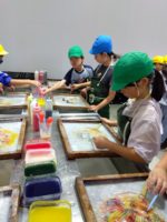 最後は、絵の具やペンで色を塗ったり、画用紙で模様や飾りを付けたりして、みんなでステキな街に仕上げました!!