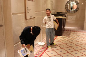 *ミニホテルマン?が出現!「朝食会場はこちらになります〜〜〜」しおりにはなかった役割のような・・・素晴らしい自主性です!!