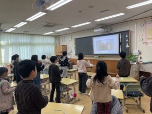その後のミニ音楽集会では「世界中の子どもたちが」を校内放送で流し、手話等の身振りを加えながら全校で楽しく(心で)歌いました♪ 次回の音楽集会は全校で集まって楽しく行えることを願います!!