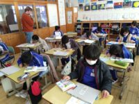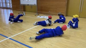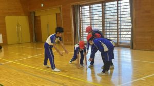 グループごとに、冒険のはじめ・中・終わりを意識しながら動きを考えました。曲を選び、選んだ曲に合わせて動きを工夫する姿が見られました。