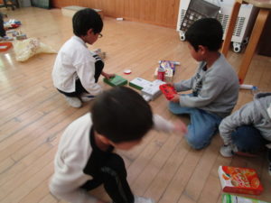 箱を並べてすごろくをつくったグループは、ゲームでとても盛り上がっていました。
