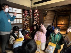 昔の民家の部屋では、今では見たことのない生活用品がたくさんあり、子どもたちは興味津々。