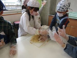 会では、子どもたちが心を込めた呼びかけや歌を披露し、これまでの学びを自分の言葉で伝えました。そして、自分たちで育てた大豆から作ったきな粉飴を振る舞い、みんなで味わいました。「おいしいね」と笑い合う時間は、これまでの歩みを静かに振り返る、あたたかなひとときとなりました。