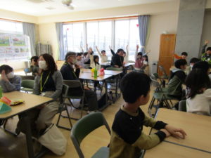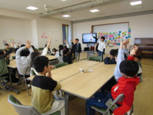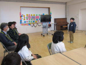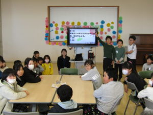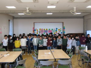 一年間、総合的な学習で大変お世話になった青野さん、堀内さん、そして北杜市商工食農課の五味さんをお招きし、子どもたちと「感謝の会」を開きました。