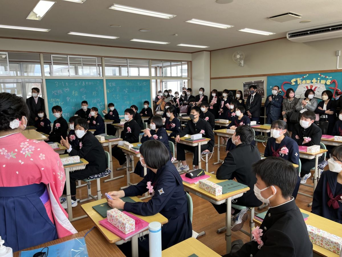 3月10日(木)長坂中学校第56回卒業証書授与式が厳かななかにも、温かく、和やかなうちに行われました。当日は天候もよく、朝からジェットヒーターで体育館を温め、換気、密集に注意しながら、多くの保護者の皆様にご参加いただき、時間と内容も短縮・縮小しましたが、ほぼ通常の卒業式を実施することができました。