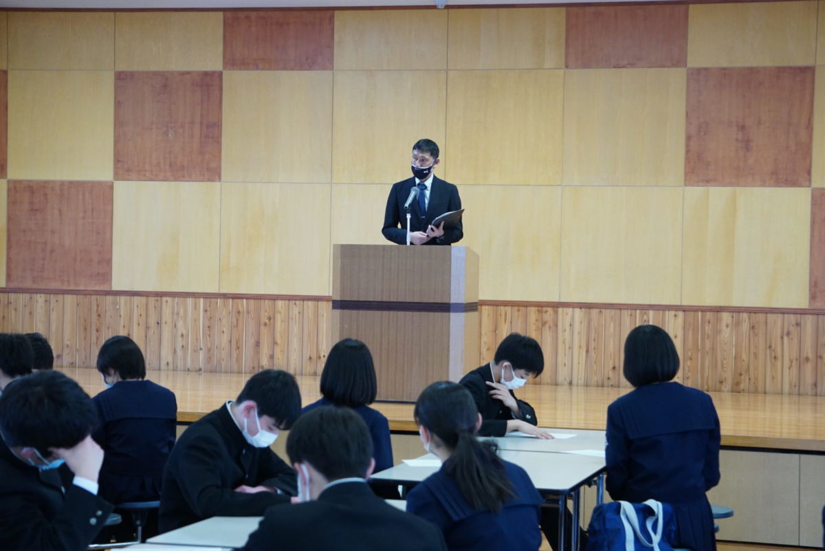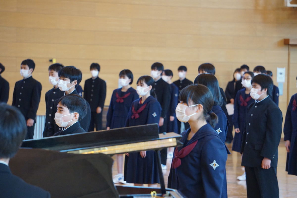 当日の修了式では、各学年の代表がそれぞれ今年度を振り返り、コロナ禍にあっても力を合わせて授業や部活動に取り組んだこと。感染症対策に気をつけながら様々な学校行事を成功できたこと。自分自身の課題に向き合いながら、来年度は心身ともに大きく成長するために精進することなどを、しっかりした姿勢で述べてくれました。大きく成長した3年生が最高学年で活躍し、2年生が先輩を支えなが後輩を育てて自己実現する。そして、フレッシュな新入生が新しい風を吹き込めるようなそんな学校を期待しています。