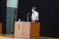 始業式の中では、校長より「感染症の予防」「規則正しい生活」「夢中になる時間を」という呼びかけと、夏休み中の諸活動の感想について話がありました。「目標に向け、チーム一丸となって取り組む」生徒たちを誇りに思う、「周りの仲間と共に、一日一日を大切にした生活」を心がけてほしい、という話がありました。