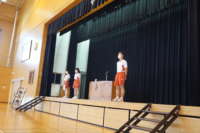 各学年代表の2学期の抱負として、1年生は「時間を守る、仲間との協力・信頼、予習復習の3点をがんばりたい。」2年生は「新人戦、白藤祭に向け、課題を改善し、意欲的に取り組みたい」3年生は「進路の実現に向けて努力し、計画的、自主的な動きを意識し行動していきたい。」という発表がありました。