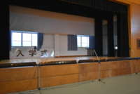体育館ステージ裏の窓も開けて換気