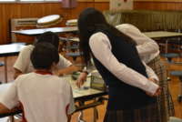 26日(月)の中間テストを前に、ガッテン講座を実施しました。この日は、甲陵高校から7名の生徒が来校し、本校の生徒へ学習の進め方やポイントなどをアドバイスしてくれました。中学生にとって、身近な高校生からの話は大変有意義で、大いに参考になると好評です。