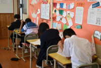 9月26日(月)に、2学期の中間テストを実施しました。今回の中間テストは、国・社・数・理・英の5教科になります。これまでの授業で学習した内容がどれだけ身に付いているか、学習した内容を活用し具体的に課題解決につなげているかなど、各教科の目標や観点に沿った試験になります。どの生徒も、日々の授業や家庭学習、放課後のガッテン講座などで取り組んできた成果を100%発揮しようと、集中して試験に臨んでいました。今後も定期テストや各種検査等がありますが、直前になって慌てるのではなく、まずは毎日の授業や家庭学習を大切にすることを心がけ、先を見通してねばり強く学習に取り組めるよう、指導、支援を進めていきたいと思います。ご家庭での声かけやご協力もよろしくお願いします。
