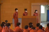 3年生にとって、中学校生活最後となる合唱発表会。その思い入れは、他の学年以上に強いものがあります。3年生の響き合う歌声、合唱に向かう姿勢、真剣な表情を見ていると、「合唱」にかける3年生の熱い思いが伝わってきます。3年生の合唱を聴いた後、1・2年生の表情が一気に引き締まりました。感染症対策を徹底しながら、残り一週間、学級、学年で力を合わせ、多くの人の心に響く合唱を創り上げていってください。