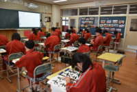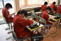 同じ13日(金)6校時に、国語科で「書き初め」が行われました。短い時間でしたが、どの生徒も真剣に取り組み、冬休み中の練習の成果をしっかり発揮していました。出来上がった作品は、地区や県の大会へ出品される予定です。
