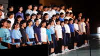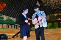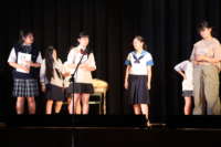 午後は各学年の発表でした。1年生は、水について学んだ総合的な学習の時間の成果を、群読と合唱によって堂々と発表しました。2年生の劇は「セレクト・ライフ」。将来の生き方について考えはじめた2年生たちが演じました。3年生の劇は「花は咲く」。最高学年の迫真の演技に、会場中が引きこまれました。