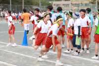 最初は、今年度新しく設定された、縦割りでの「玉入れ」と「綱引き」です。3年生が中心となって作戦を立て、学年の枠をこえて楽しく実施できました。