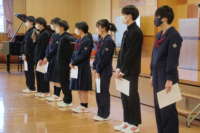 各学年の代表生徒による「3学期の抱負」では、3名がそれぞれの目標や来年度を見据えた前向きな目標を発表しました。また、学校長からは短い3学期だからこそ、様々なことに「自分事(じぶんごと)」として取り組んでほしいと、エールが送られました。
