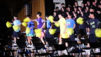 3年生からは、合唱と応援で、これからの学校をつくっていく在校生に向けてエールが送られました。3年生の合唱に在校生は聞き入り、「あと少しで聞けなくなるのは残念…」という声もありました。在校生の実行委員から記念品が贈られた後、3年生から在校生へ紙飛行機でメッセージが送られるというサプライズも用意されていました。