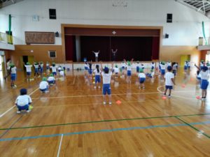 運動会の表現の練習がはじまりました。みんな楽しそうに踊っています。