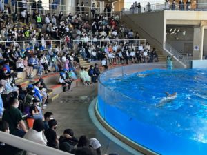 2023年5月10日 / 最終更新日時 : 2023年5月10日 須玉小 ブログ 修学旅行:イルカショー 最前列に陣取ったグループは、水しぶきを浴びながらの鑑賞でした。華麗なイルカのジャンプに、大興奮しました。