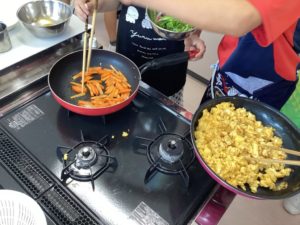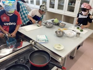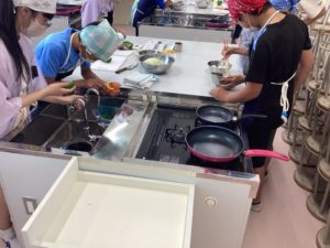用具の準備から調理、片付けまで自分たちで考えて行っていました。