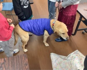 授業参観は、白濱さんと盲導犬をお呼びして、盲導犬とユーザーさんの生活の様子などのお話を聞きしました。困っている人がいたら助け合うこと、山梨県には盲導犬が13頭いること、白杖は最初は使えないが練習すること、「みんなちがってみんないい」ことなどたくさんのことを感じ取った様子でした。オンラインで盲導犬のことを学んではいましたが、実際に、盲導犬を目の前にしてたくさんのことを学びました。