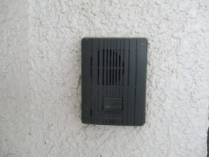 正面玄関・児童玄関に設置されているインターフォンを押してください。