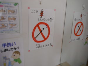 子ども達の手作りのポスターが、いろいろな所に掲示されています。