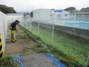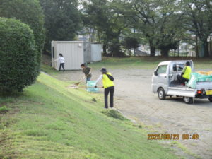 PTA奉仕作業を行いました。グラウンドの草や学校周りの草、そして学校林、とてもきれいになりました。子どもたちも2学期から気持ちよく学校生活がおくれることと思います。早朝5:30からは刈払い機の保護者の皆様方、6:30からは手がんなでの作業や草集め、草の運搬などの保護者の皆様方、PTA総務部の皆さんを中心に早朝より作業をありがとうございました。