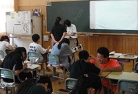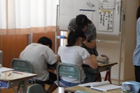 担任の先生が個別指導をする間に、早く終わった子どもが「ミニ先生」で答え合わせしていました。